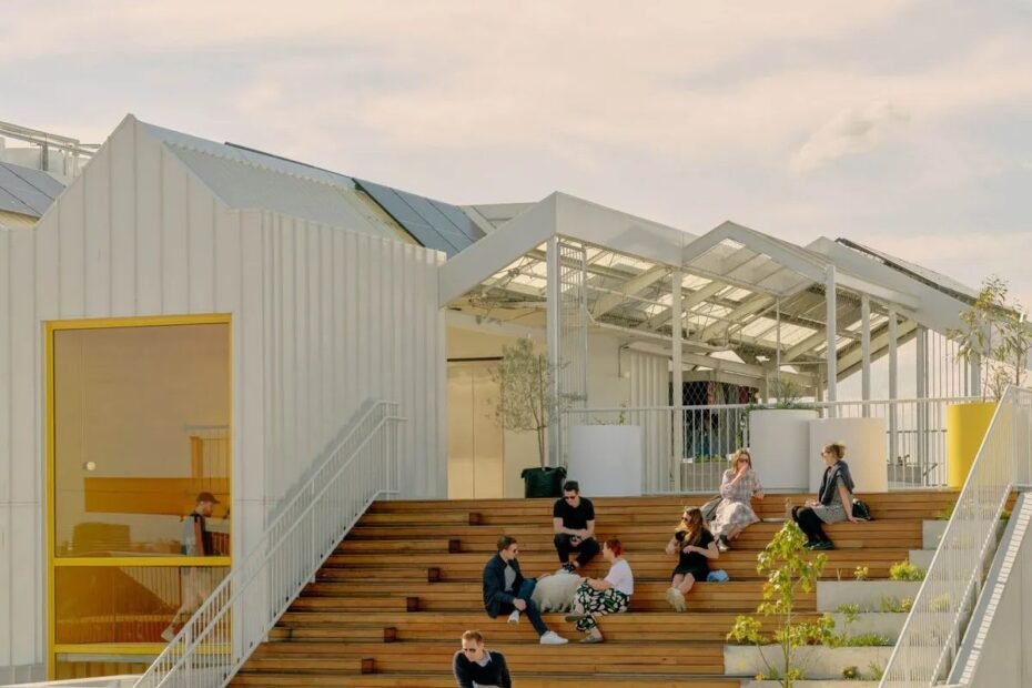 Portas de entrada dos apartamentos se abrem para varandas externas amplas e iluminadas. Os moradores dividem lavanderia na cobertura, horta, varanda com churrasqueira elétrica e um anfiteatro com vista para o bairro e para o parque. Segundo residentes, esses espaços tornaram o ParkLife o edifício “mais animado” do conjunto The Village — primeiro complexo carbono zero da Austrália.